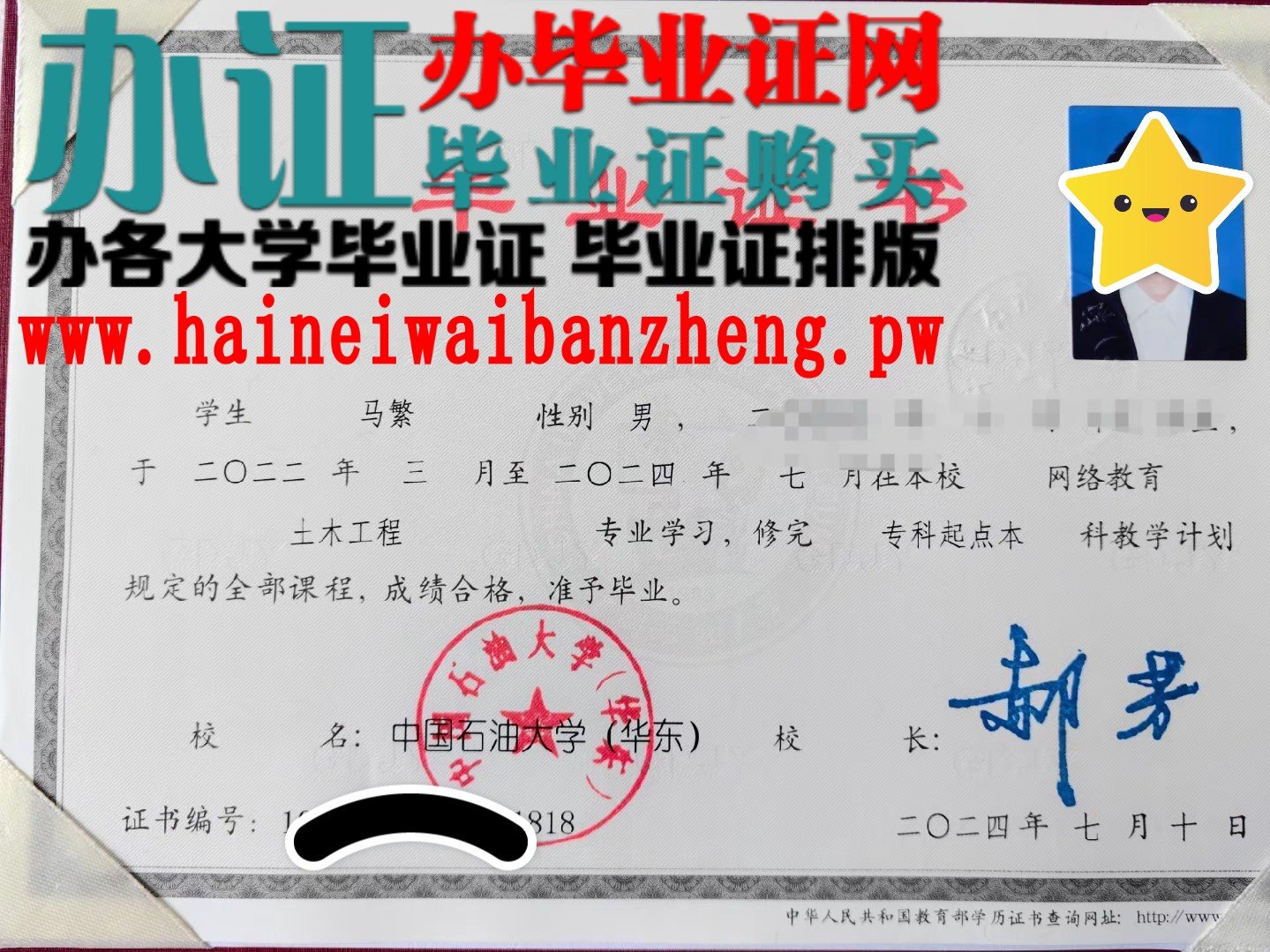[大学毕业证样本] 在哪里办中国石油大学(华东)毕业证和学士学位证,中国石油大学(华东)毕 日期:2026-01-26 23:53:44 点击:50 好评:0