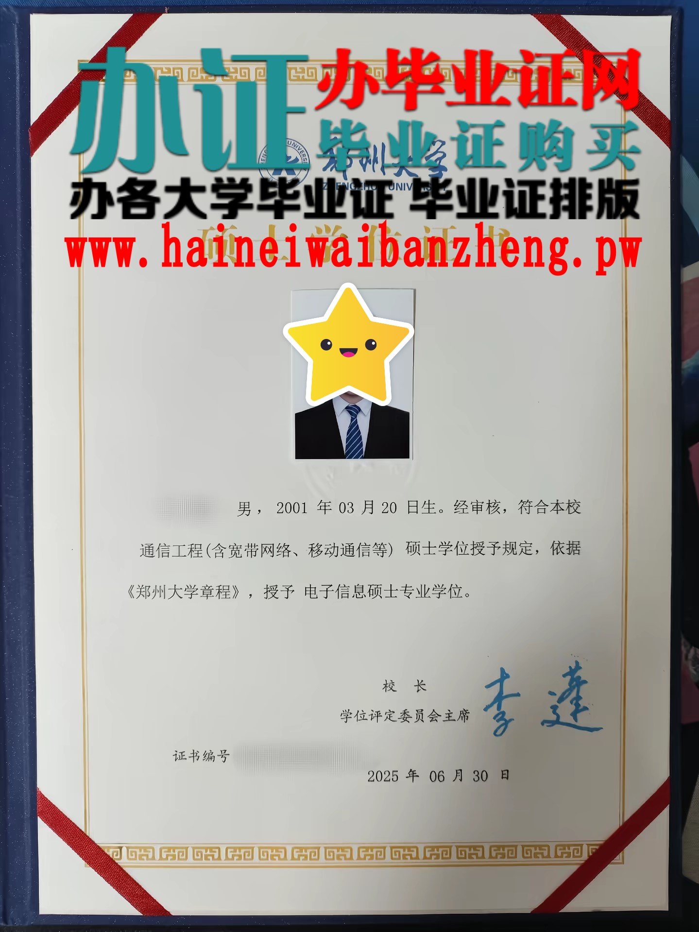 [硕士博士毕业证] 办2026年最新版郑州大学博士学位证,郑州大学硕士研究生毕业证办理 日期:2026-01-24 18:51:28 点击:97 好评:0